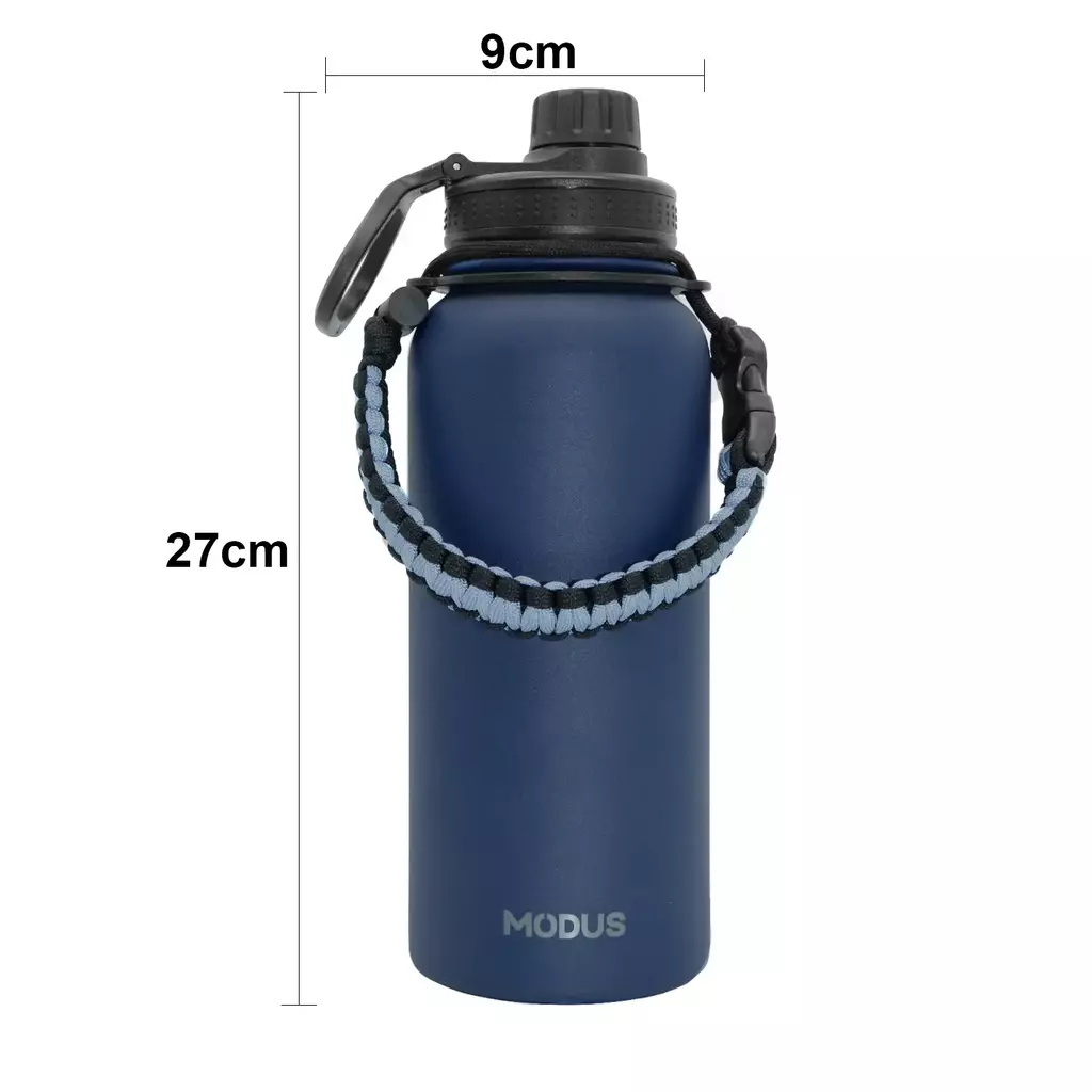 O anel de puxar é firmemente ligado na tampa, facilitando o transporte. Além disso, cada garrafa vem com um cordão (removível). Possui fivela na corda, facilitando pendurar a garrafa na mochila na hora de sair e relaxar as mãos.